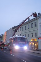 Die Vorboten des angekündigten Sturmes ließen in Schwanenstadt bereits erste Schäden zurück. In der Agersiedlung kippte eine Gartenmauer auf ein abgestelltes Fahrzeug. Im Garten des Kindergaten (Süßmayrstraße) brach ein Baum, und am Stadtplatz wurde die Verkleidung eines Rauchfanges beschädigt und drohte auf den Gehsteig zu fallen. (Fotos: FF Schwanenstadt)