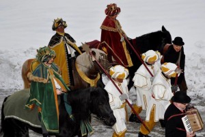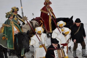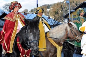 Am Ortsplatz gibt es dann traditionell vor großer Publikums- und Höllengebirgskulisse eine Extravorstellung mit einem Gedenken an alle bisherigen Akteure. Die prächtigen Kleider der reitenden Könige, die weißgewandeten Treiber und die in der bäuerlichen Tracht des Aurachtales auftretenden Instrumentalisten bzw. Sänger bieten alle Jahre ein schönes und begehrtes Fotomotiv. der Idealismus der Dreikönigsreitergruppe ist lobenswert und bringt jedes Mal viele Spenden für die Mission ein. – Die Sänger und Instrumentalisten haben eine neue CD mit bekannten und etlichen neuen Liedern aus dem Salzburgischen Raum eingespielt und bieten diese zum Kauf um 14 Euro an (Trafik Pesendorfer und bei den Mitgliedern der Reitergruppe erhältlich). (Text: Erwin Moser)