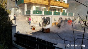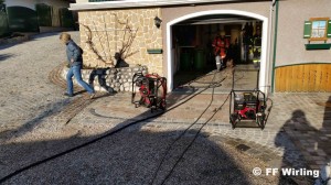 Nach vergeblichen Löschversuch der Hausbesitzer wurde der Notruf 122 gewählt. Als Einsatzziel galt es für die Mannschaften der FF Rußbach, der FF Wirling und die FF St. Wolfgang im Keller mittels schwerem Atemschutz das ausgebrochene Feuer unter Kontrolle zu bringen.