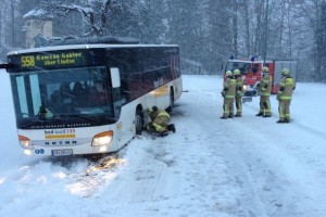 Der Bus war ohne Schneeketten unterwegs. Nach Absicherung der Einsatzstelle konnte der Bus mittels Einbauseilwinde rasch geborgen werden. Es wurden keine Personen verletzt. Einsatzende: 08:58 Uhr. Es waren 15 Kameraden der FF-Pfandl im Einsatz.