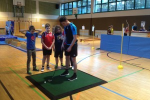 Im Turnsaal wurden verschiedenste Sportstationen aufgebaut, darunter praxisnahe Golfstationen. Im Anschluss wurden die jungen Gäste mit schmackhaften Aufstrichbroten, natürlich und gesund, sowie mit frisch gepressten Säften verwöhnt. Die eingeladenen Klassen der NMS Johann Nestroy und der NMS Ebensee mit sportlichem Schwerpunkt waren von der Veranstaltung total begeistert.