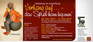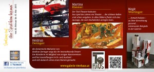 Das Team der Galerie 10er Haus lädt Sie herzlich zur Ausstellungseröffnung am Freitag, den 20. Februar 2015 um 19.30 Uhr ein. Buffet und Getränke erwarten Sie für ein herzliches Willkommen!