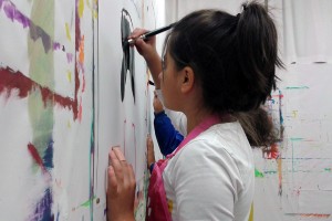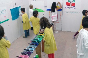 Montag morgen in der Volkschule Gmunden Stadt. Zehn Kinder freuen sich heute ganz besonders auf den Tag! Leise gehen sie um 10:45 mit ihrer Lehrerin die Stiege hinunter in den Keller. Dort befindet sich seit Schuljahresbeginn ein ganz besonderer Raum. Sie betreten ihn leise und suchen sich einen Platz. An den Wänden zeugen schon viele Spuren von bunten Stunden.