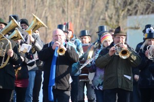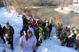 Dabei wurde von der Faschingsgilde wiederholt und augenzwinkernd ein Gebet gesprochen, das ungefähr so lautet „Mein lieber Fasching, endlich ist es wieder einmal soweit, dass es Dir die Hausschuhe ausgezogen hat, aber wir sind schon froh darüber. Unsere Frauen kennen uns auch nicht mehr, weil wir schon seit Wochen nicht mehr zuhause waren, weil wir mit Dir so gesoffen haben, das ganze Geld hast Du uns genommen und in den grössten Schmutz hast Du uns geschmissen, jetzt zünden wir Dich an, und wir schmeißen Dich in die Traun, dass Du ja heuer nicht mehr zurückkommen kannst. Aber nächstes Jahr, da warten wir wieder auf Dich und dann singen wir genauso wie jetzt …“