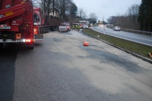 Am Dienstag, 24.2.2014 brach auf der B145 in Fahrtrichtung Altmünster bei einem LKW die Kardanwelle, schlug gegen die Dieselleitung und riss diese ab. Dadurch floss Diesel aus und gelangte in den Regenwasserkanal. Der Fahrer lenkte das Schwerfahrzeug auf einen Parkplatz und konnte rasch den Treibstoffausfluss stoppen, sowie den Notruf wählen.