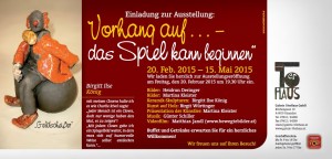 Die Ausstellung „Vorhang auf … – das Spiel kann beginnen“ findet in der Galerie 10er-Haus von 20. Feb. 2015 – 15. Mai 2015 statt. Das Team der Galerie 10er Haus lädt Sie herzlich zur Ausstellungseröffnung am Freitag, den 20. Februar 2015 um 19.30 Uhr ein. Buffet und Getränke erwarten Sie für ein herzliches Willkommen!