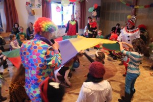 Mit viel Freude und in fröhlich ausgelassener Stimmung feierten rund 60 Kinder beim traditionellen Faschingsfest in St. Konrad am Samstag, den 14. Februar 2014. Im voll besetzten „Alten Musikhaus“ vergnügten sich die fantasievoll verkleideten Kids beim Kegeln, Dosenschießen, Ball in den Korb sowie vielen Tanz- und Gemeinschaftspielen. Zur Stärkung gab es für Groß und Klein köstliche Krapfen, Würstel und verschiedene Säfte für Kinder und Erwachsene.