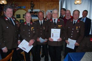Auch zahlreiche Ehrungen und Beförderungen verdienter Kameraden konnten durchgeführt werden. So konnten für Ihre 60 jährige Mitgliedschaft Daxner Anton, Großauer Fritz, Heissl Rudolf, Steinkogler Anton und Steinkogler Robert ausgezeichnet werden. Für die 50 jährige Mitgliedschaft konnte Schwarz Nilokaus geehrt werden.