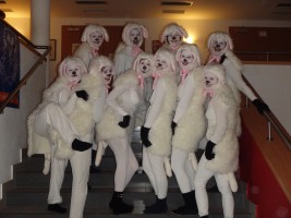 Knackige Holzfällerinnen und ehrwürdige Bäume erinnerten an die liebevollen Holzschlägerungsarbeiten im Naherholungsraum an der Traun und ein akrobatischer Auftritt von Baywatch Rettungsschwimmern nahm Bezug auf die laufenden Arbeiten am neuen Flusskraftwerk. Zwischendurch sorgten zahlreiche Schäfchen für einen geruhsamen Schlaf unseres Bürgermeisters.