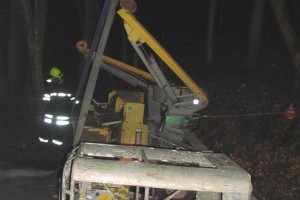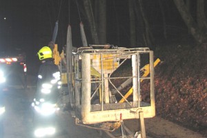 In den Abendstunden des 14.03.2015 wurden die Einsatzkräfte der Feuerwehr Puchheim zu einer Anhängerbergung alarmiert. Ein Fahrer eines Pkws hatte aus bisher unbekannter Ursache seine Arbeitsbühne verloren. Diese stürzte um und blockierte den Ahberg.