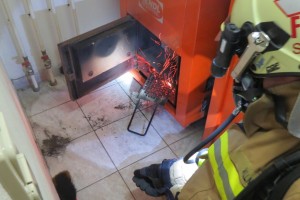 Unverzüglich wurde die gesamte Ausrüstung aufgeräumt und die Mannschaft rückte zur Einsatzadresse aus. Bei der Erkundung durch einen Atemschutztrupp mit Wärmebildkamera und UHPS wurde eine Verpuffung durch ein technisches Gebrechen sowie unverbrannte Rückstände im Bereich des Aschebehälters der Pelletsheizung festgestellt.