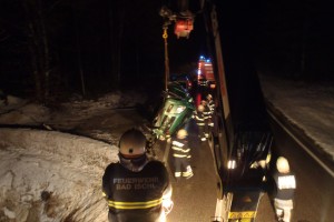 In der vergangenen Nacht um 23:30 Uhr wurden die Kameraden der Freiwilligen Feuerwehren Mitterweißenbach und Bad Ischl zu einem Verkehrsunfall ins Weißenbachtal gerufen. Ein PKW-Lenker geriet mit seinem Fahrzeug aus bisher unbekannter Ursache von der B153 der Weißenbachtalstraße ab. Nach einem Überschlag kam das Fahrzeug in einem Bachbett zum liegen.