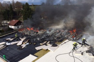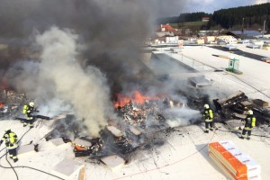Die starke Rauchentwicklung sowie mehrere Gasflaschen und berstende PU-Schaumdosen erschwerten die Löscharbeiten. Um ca. 17h konnte „Brand Aus“ gegeben werden. Der Großteil der eingesetzten 150 Feuerwehrkräfte aus 10 Feuerwehren konnte abrücken. Eine Brandwache verblieb vor Ort.