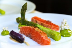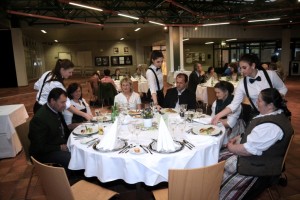 Nach dem Sektempfang wurden die rund 55 Gäste zu den Tischen in der Aula begleitet. Klassensprecher Patrick Kanzler eröffnete den Abend mit einer kurzen Rede. Danach wurde auch schon der erste Gang des köstlichen, kreativen 5-Gänge-Menüs serviert, das unter anderem aus gebeiztem Lachs auf Avocado Püree mit grünem Spargel, Bärlauchsuppe mit wachsweichem Dotter oder Rücken und Lauf vom Kaninchen bestand.