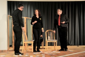 Nach jedem Gang hatte die Improvisationsgruppe „Lachgas“ der Kellerbühne Puchheim ihren Auftritt. Bei den 20-minütigen Showeinlagen verarbeiteten die vier Schauspieler und der Pianist die Ideen des Publikums in ein lustiges Szenario. Die Gäste hatten z.B. die Aufgabe, einen Satz auf ein Stück Papier zu schreiben, mit dem sie die Schüler nach der Matura beglückwünschen möchten. Die Gruppe „Lachgas“ machte daraus eine Konversation zwischen einem Liebespaar.