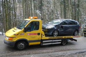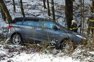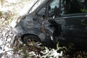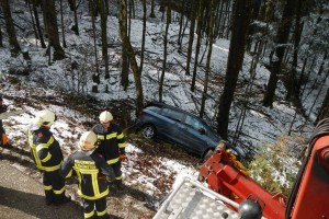Ein PKW besetzt mit einer 4 köpfigen Familie fuhr vom Gmundnerberg talwärts Richtung Altmünster. Im Steilstück kurz nach der „Edt“ blieb ein bergwärts fahrendes Fahrzeug hängen. Der sich talwärts bewegende PKW mit der Salzburger Familie musste ausweichen, kam ins Rutschen und stürzte in den Wald. Bäume verhinderten einen weiteren Absturz, sowie einen Überschlag in den etwa 20m darunter befindlichen Graben. Auch von Riesenglück kann man sprechen, dass das Auto nicht frontal in einen Baum gekracht ist. Alle Insassen konnten sich unverletzt selbst befreien. „Man kann fast von einem Osterwunder sprechen“ so Martin Halver, Einsatzleiter der Feuerwehr.