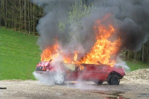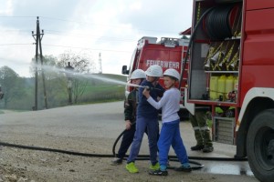 Einige Gerätschaften konnten auch gleich mal ausprobiert werden, was allen Teilnehmern sehr imponierte. Zum Abschluss wurde noch eine „echte Einsatzfahrt“ zu einem brennenden Auto mit den acht Jugendlichen gemacht, die am Einsatzort angekommen, gleich einmal den ersten Löschangriff durchführten.