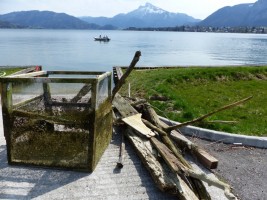 Das Forschungsinstitut für Limnologie (Universität Innsbruck) war 2015 wieder mit dabei. Das Forschungsschiff „Luna“ leistete den Mondseer LimnologInnen gute Dienste. Mit Hilfe des Bootes konnten schwere Gegenstände, die sich in den geschützten Schilfuferzonen befanden, geborgen und abgeschleppt werden. In den sensiblen Schilfbereichen werden große Holzstämme oder alte Surfbretter, die vom Hochwasser dorthin verfrachtet werden, zum Problem. Diese Gegenstände sind durch Wellenschlag und Wind ständig in Bewegung und schlagen die sensiblen Schilfhalme ab.
