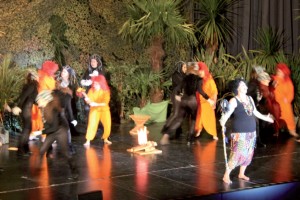 Um 16.00 Uhr eroberten die Tschempernkids die Bühne: vor über 400 Zuschauern zeigten die jungen Darsteller/innen das Musical „Welcome to the jungle“. Eine spannende Geschichte über ein Kind, das im Dschungel aufwächst und dabei Freundschaft mit den Tieren schließt – ein gelungenes kunterbuntes Programm für große und kleine Gäste!