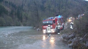 Die Kameraden der Ischler Feuerwehren zogen das verunfallte Kraftfahrzeug mit der Seilwinde des schweren Rüstfahrzeuges auf festen Untergrund, wo es von einem Abschleppunternehmen abtransportiert wurde.