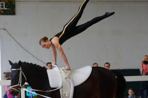 Anschließend starteten die offiziellen Turnierbewerbe. In den Klassen Einzel A bis S forderten die Richter hohe Schwierigkeit und ausdrucksstarkes Turnen bei den Küren und eine starke, souveräne Pflicht. Je höher die Leistungsklasse, desto spannender war es auch für die vielen Zuschauer, die die Akrobaten auf dem Pferd bestaunten und kräftig anfeuerten. Spätestens bei den anspruchsvollen und kreativen Küren im Galopp war die Reithalle prall gefüllt, sehr zur Freude des fleißigen Buffet-Teams, die für das leibliche Wohl sorgten.