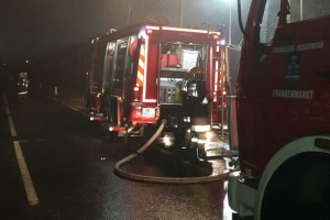 Die 9 Feuerwehren aus Vöcklamarkt wurden um 19:19Uhr alarmiert, beim Eintreffen hatte sich der Brand bereits bis ins Dachgeschoss ausgeweitet. Durch einen Innenangriff mit umluftunabhängigem Atemschutz konnte der Brand rasch eingedämmt werden, jedoch hatte durch die große Hitze bereits der Dachstuhl zu glosen begonnen. Daher wurde die FF Frankenmarkt mit der Drehleiter nachalarmiert. Ein Übergreifen des Brandes auf die zweite Hälfte des Hauses konnte so erfolgreich verhindert werden. Fotos: FF Frankenmarkt