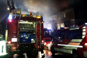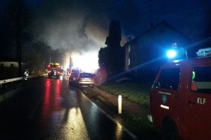10 Feuerwehren waren am 30.03.2015 beim Brand eines Wohnhauses in der Frankenburgerstrasse in Vöcklamarkt im Einsatz. Aus ungeklärter Ursache war im Erdgeschoss einer Doppelhaushälfte ein Brand ausgebrochen, der sich durch die offene Bauweise rasch ausbreitete.