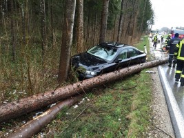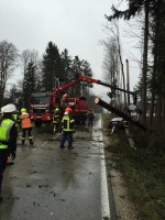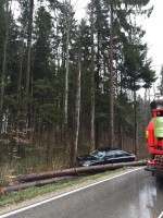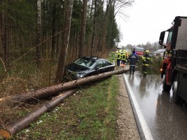 Am Donnerstag 02.04.2015 wurde die Feuerwehr Scharnstein um 14:03 Uhr von der Landeswarnzentrale zu einem Sturmschaden „Baum über Straße“ auf die L 549 Almseelandesstraße alarmiert. Wie sich jedoch bei Ankunft am Einsatzort herausstellte war auch ein PKW beteiligt. Eine Fahrzeuglenkerin hatte großes Glück und konnte zwei umfallenden Bäumen gerade noch rechtzeitig ausweichen und kam im Straßengraben zum Stillstand.