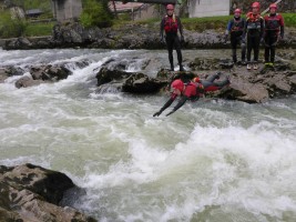 Am Samstag haben die Kursteilnehmer unter der Einsatzleitung einer erfahrenen Wildwasserretterin ein Übungsszenario (Canyoningunfall – 3 teils schwer verletzte Personen) gelöst, wodurch die tags zuvor erlernten theoretischen Kenntnisse praktisch angewendet werden konnten.