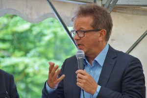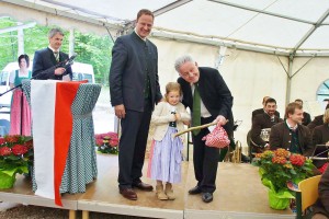 In das gleiche Horn stieß dann der Präsident des Betreibervereines Wildpark Grünau Di Johann VIELHABER und auch seine Vereinsvorstände. Den Stellenwert des Wildparks Grünau für Oberösterreich und der Region wurde von allen folgenden Rednern der Politik und auch von Landeshauptmann Dr. Josef PÜHRINGER besonders betont. Als kleines Gastgeschenk wurden den Politikern “Bschoard-Binkerl” zur Stärkung für den Nachhauseweg überreicht.
