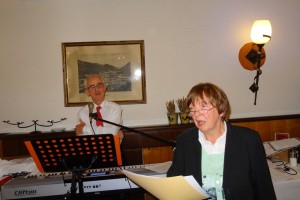 „Wenn Angehörige strahlen und erzählen: Mein Mann hat seit zehn Jahren nicht mehr getanzt, dann steckt diese Freude an“, erzählt Prof. Friedrich Gaigg, wenn er zu den Hadern der 50er, 60er und 70er Jahre aufspielt und Marianne Stieber teilweise selbstgeschriebene Gedichte vorträgt. „Wir haben damals sofort zugesagt, als uns Felicitas Zehetner, Gründerin und Obfrau der MAS Alzheimerhilfe, gefragt hat“, berichtet Prof. Wilfried Kefer von der „Geigen Dischgu“. „Das Konzept des MAS Alzheimerurlaubs hat uns sofort überzeugt. Wir wollen den Betroffenen und auch den Angehörigen den Abend zum Geschenk machen. Innerhalb dieser zwei Stunden haben die Paare, aber auch wir Künstler viel Freude.“