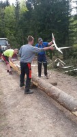 Am Dienstag, 12. Mai um 17:00 Uhr wurde dann ein Kran organisiert, und der Baum erhielt wieder seinen Wipfel. Die Zahlreiche Nachfrage, die positive Rückmeldung, und der Erhalt der Österreichischen Tradition haben uns veranlasst, im Jahr 2016 wieder einen Baum aufzustellen.