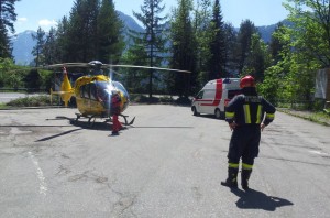 Beim Eintreffen der Feuerwehr wurde von den ersten Einsatzkräften die Türen des Unfallfahrzeuges mittels Brechstange geöffnet und der Lenker und die Beifahrerin konnten daraufhin aus dem PKW befreit werden. Die Erstversorgung wurde vom Notarzt des LKH Bad Ischl und dem Roten Kreuz Bad Goisern durchgeführt. Aufgrund der schweren Verletzungen des Lenkers wurde zum weiteren Transport ins LKH Salzburg der Rettungshubschrauber Christophorus 3 angefordert. Dieser wurde von den ausgebildeten Flughelfern des Waldbrandstützpunktes St. Agatha bei der Landung am Parkplatz der Pötschenkehre eingewiesen. Die Beifahrerin wurde nach der Erstversorgung ins LKH Bad Ischl überstellt.