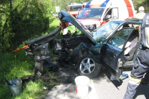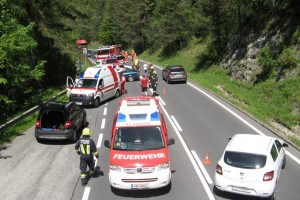 Zu einem schweren Verkehrsunfall mit eingeklemmter Person wurden heute kurz nach 13.00 Uhr die Feuerwehren St. Agatha und Bad Goisern alarmiert. Bei der Talfahrt vom Pötschenpass unmittelbar nach der Kehre 1 geriet ein PKW-Lenker aus Deutschland mit seinem Fahrzeug aus bisher ungeklärter Ursache auf die Gegenfahrbahn und prallte am Ende eines Parkplatzes frontal gegen den Anfang der Leitschiene. Dabei wurden sowohl der Lenker als auch die Beifahrerin unbestimmten Grades verletzt.
