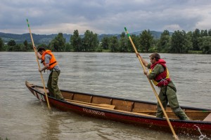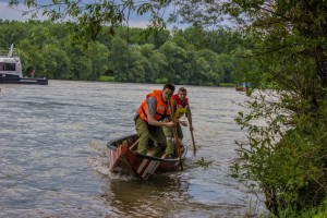 Zu Mittag ging es für die Teilnehmer an die Donau zur praktischen Prüfung. Hierbei wurde ein Parcours schnellst möglich abgefahren. Der starke Zug der Donau erschwerte dabei das Fahren in der Zille enorm. Nachdem auch diese Station abgearbeitet war, stand die Meisterklasse am Programm. Hier fahren Zillenfahrer aus Oö. welche bereits in Besitz des Abzeichens in der Stufe Gold sind. BI Michael Moran, AW Bernhard Huemer und HBM Christoph Katherl traten hierbei an.
