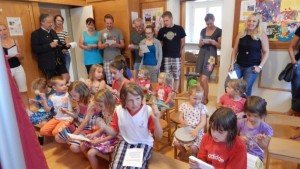 Das 10 Jahresfest des Eltern-Kind-Zentrums Mäusehaus in Hallstatt fand unter leicht erschwerten Wetterbedingungen statt. Nichts desto trotz freuten sich Eltern wie Kinder über diese gelungene Feier. Die Leiterin Christa Reisenbichler freute sich mit ihrem Team, allen voran Mag. Manuela Seidl, die sich um das Mäusehaus besonders verdient gemacht hat, über den regen Zuspruch des Eltern-Kind-Zentrums. Ein gemütlicher Nachmittag mit Kuchenbuffet, Hüpfburg, basteln, singen und dem Kasperl, sowie der musikalischen Untermalung mit Sepp, Christoph und Moritz fand gegen Abend erst sein Ende. (Fotos: privat)