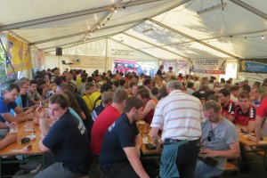 Zu guter Letzt holte HBI Robert Mirlacher die anwesende Mannschaft, die seit Tagen der Hitze trotzte, zusammen, gegen jede Etikette stieg auch er einmal auf einen Biertisch, nahm einen Doppler Bier und bedankte sich bei allen, die so hinter ihm standen, und wer ihn kennt, der weiß, es waren keine Freudentränen – nur der Schweiß der Arbeit – oder?