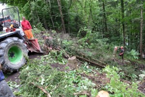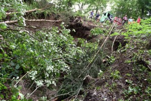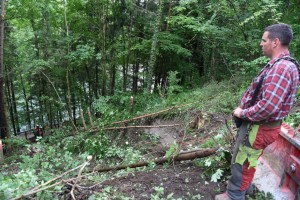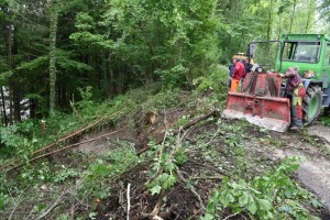 Nach dem Abgang einer Schottermure auf die Ohlsdorfer Landesstraße war heute Aufräumen und Absichern angesagt: Mehrere Firmen waren im Bereich der Traunbrücke Steyrermühl eingesetzt, um abgerutschte Bäume und Material wegzubringen. Schon gestern Abend brachte die Straßenmeisterei unmittelbar nach dem heftigen Unwetter schweres Gerät vor Ort, um den Schotterberg auf der Straße abtragen zu können. Die Landesstraße war auch heute im Laufe des Tages weiter gesperrt.