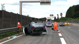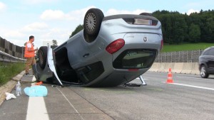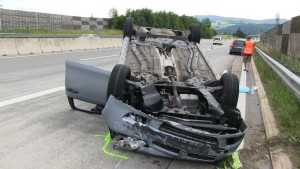Bei einem Verkehrsunfall auf der Autobahn im Gemeindegebiet von Sankt Georgen im Attergau wurden am 25. Juni 2015 zwei Insassen leicht verletzt. Ein 61-jähriger Autofahrer aus Salzburg kam aus unbekannter Ursache gegen 14:45 Uhr auf der A 1 in Fahrtrichtung Salzburg mit seinem Pkw ins Schleudern. Anschließend touchierte er mit seinem Auto die Mittelleitwand, überschlug sich und blieb auf dem Dach liegen.