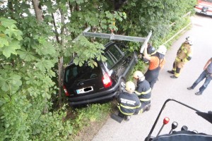 Zu einer Fahrzeugbergung wurden am 26.06.2015 um 18:36 Uhr die Kameraden der Freiwilligen Feuerwehr Bad Ischl und der Feuerwache Rettenbach gerufen. Ein Fahrzeug ohne Insassen machte sich selbstständig und rollte über das Bankett Richtung Rettenbach hinaus. Der PKW blieb an mehreren Bäumen hängen und konnte somit nicht mehr in den Rettenbach stürzen.