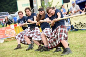 Die einst männliche Bastion bröckelt mittlerweile: In Timelkam versuchten sich auch viele Frauen und Kinder im Baumstamm-Werfen (weit), Fassl-Werfen (hoch) oder Seilziehen.