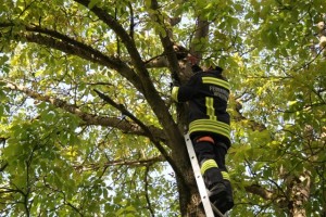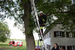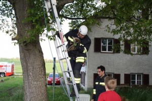 Die FF Windern wurde am Sa. 30.05.2015 um 08:45 Uhr telefonisch zu einer Tierrettung alarmiert. Am Einsatzort eingetroffen saß eine Katze ca. 10m hoch in einem Baum fest. Durch die aufgestellte Schiebeleiter konnte ein Feuerwehrmann zur Katze hochsteigen und das verängstigte Tier wieder sicher zu Boden bringen. Der Einsatz konnte nach ca. 40 Minuten wieder beendet werden.