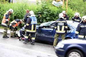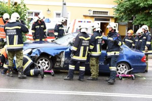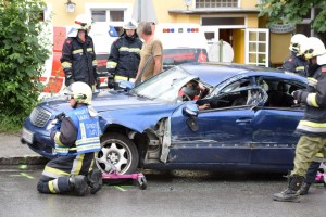 Mindestens einen Verletzten forderte der Zusammenstoß eines PKWs mit einem Sattelschlepper heute, Montag, auf der sogenannten Fabrikskreuzung in Steyrermühl. Ein Mercedes touchierte kurz nach 17 Uhr aus noch unbekannter Ursache den hinteren Bereich des Sattelaufliegers, wodurch die Fahrerseite aufgerissen und erheblich beschädigt wurde. Der Lenker trug Verletzungen unbestimmten Grades davon und wurde an Ort und Stelle vom Notarzt erstversorgt. Drei weitere Autoinsassen, die Beifahrerin und zwei Kinder, wurden ebenfalls – vorsorglich – in das Krankenhaus gebracht. Die Aufräum- und Sicherungsarbeiten an der Unfallstelle führten die Betriebsfeuerwehr UPM Steyrermühl, deren Depot sich direkt beim Unfallort befindet, und die Feuerwehr der Stadt Laakirchen durch.
