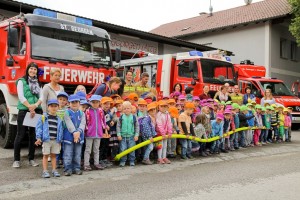 Ca. 100 Kindergartenkids des Pfarrkindergartens der Gemeinde besuchten die Floriani`s in ihrem Stützpunkt. Dort wurde anschaulich von den Feuerwehrmännern erklärt und gezeigt, welche Ausrüstungen und Geräte in den verschiedenen Fahrzeugen steckt.