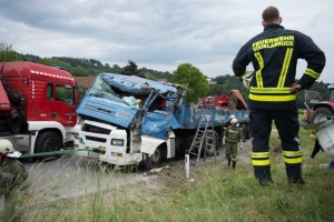 Tödliche Verletzungen erlitt ein 54-jähriger Kraftfahrer aus Traiskirchen bei einem Lkw-Unfall am 18. Juni 2015 in Neukirchen an der Vöckla. Der 54-Jährige fuhr mit seinem Lkw samt Anhänger und einem geladenen Kran gegen 12 Uhr auf der Riegler-Landesstraße Richtung Frankenburg.