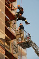 Das Baugerüst bei der Kirche Hl. Geist Attnang, diente am Freitag den 12.06.15 den Kameraden der FF Attnang als Übungsobjekt. Personenrettung am Baugerüst war das Übungsthema für Drehleiter und Höhenrettungsgruppe. Aus circa 25 – 30 m Höhe wurden dabei Personen mittels Seil und Drehleiter gerettet. Solche spektakuläre Übungsobjekte hat man natürlich nicht immer zu Verfügung. Danke an die Pfarre Attnang. (Foto: privat)