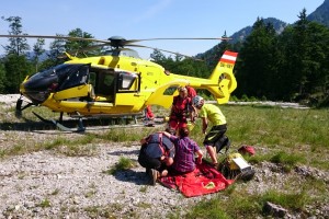 4 Bergretter die in unmittelbarer Nähe kletterten eilten zu Hilfe. Die Frau wurde am Bergetau mit dem Notarzthubschrauber C14 beborgen, nach einer Zwischenlandung im Tal von Flugärztin und Bergrettung geschient und weiter ins Krankenhaus Kirchdorf geflogen. Die Bergrettung Grünau war insgesamt mit 10 Mann im Einsatz.
