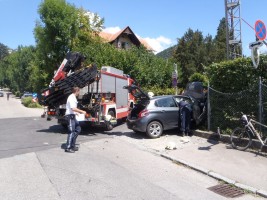 Auf der Kreuzung Bauerstraße/Brennerstraße prallten ein Linienbus und ein Kraftfahrzeug zusammen. Nach dem Aufprall schlitterte der PKW gegen einen Zaun und blieb schlussendlich auf einer Mauer hängen. Drei verletzte Personen wurden vom Roten Kreuz Bad Ischl erstversorgt und ins Krankenhaus transportiert.