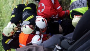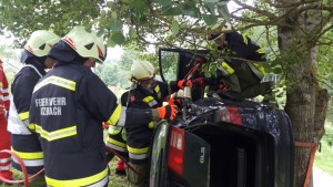 Bei der Lageerkundung stellte sich heraus, dass nur in einem Auto Personen eingeklemmt sind. Die Lenkerin im zweiten Auto wurde vom RK versorgt und auch gerettet. Die eingeklemmten Personen im zweiten Auto mussten mittels hydraulischen Rettungsgerät befreit werden. Dabei war die größte Herausforderung mit dem im zweiten Rettungsauto am Unfallort eingetroffen Arzt die schnellste und schonenste Rettung zu koordinieren und den engen Arbeitsbereich direkt am Unfallfahrzeug optimal auszunutzen. Die gesamte Rettung der eingeklemmten Personen war durch die seitliche Lage des Fahrzeuges und den Zugang zum Fahrzeug über die Böschung erschwert.