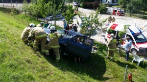 Am Sonntag, 05. Juli 2015 um 15:45 Uhr wurden die Freiwilligen Feuerwehren Bad Ischl und Pfandl zu einem Verkehrsunfall mit eingeklemmter Person alarmiert. In der Nähe der Lindaustraße kam ein PKW von einem Schotterweg, aus ungeklärte Ursache vom Weg ab und stürzte über eine Böschung.